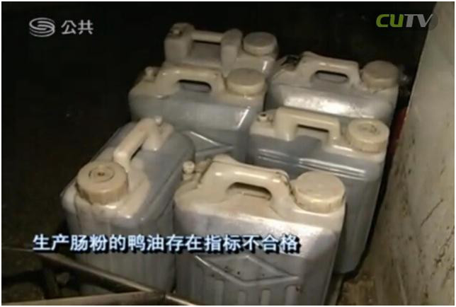 龍崗區(qū)食藥局食品安全監(jiān)管科副科長崔世峰:“從檢查和抽樣結(jié)果來看,食品廠當(dāng)時使用的鴨油是屬于來源不合法。目前稽查大隊已經(jīng)對鴨油進行立案并查處。檢測結(jié)果表面生產(chǎn)腸粉的鴨油存在指標(biāo)不合格,來源不明等問題。”