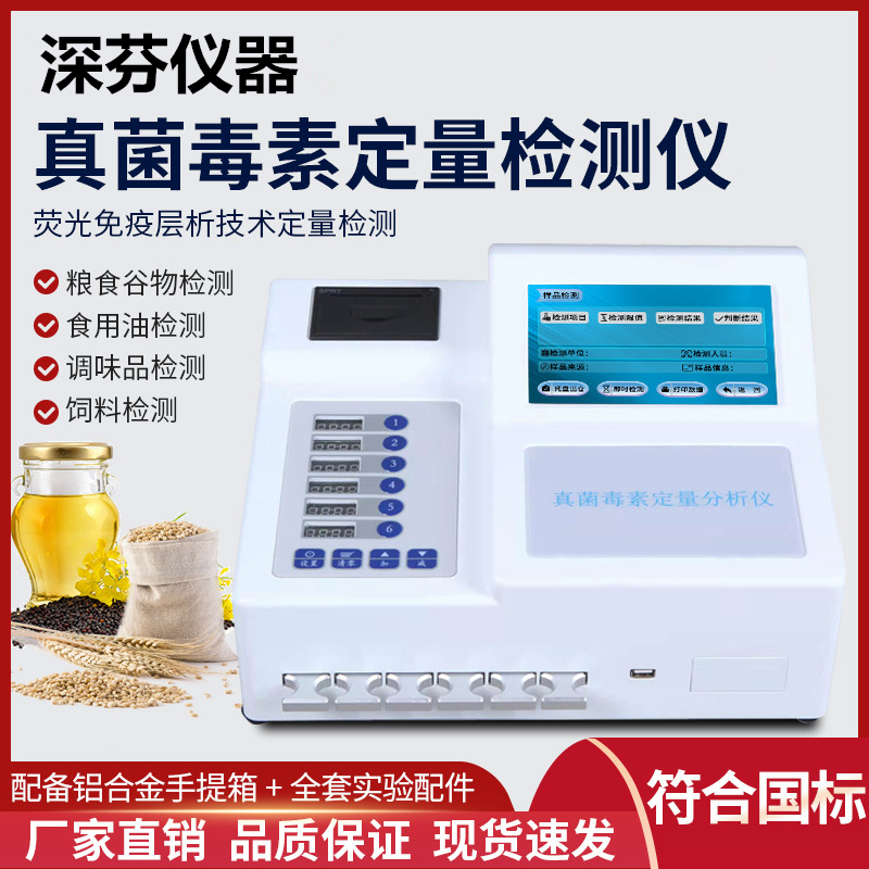 深芬儀器CSY-YG701真菌毒素快速檢測儀能夠快速定量檢測糧食、飼料、谷物、食用油、調(diào)味品等食品中T2毒素、嘔吐毒素、赭曲霉毒素、伏馬毒素、玉米赤霉烯酮,適用于糧油監(jiān)測中心、糧油飼料生產(chǎn)加工、食品加工貿(mào)易、畜禽養(yǎng)殖戶自查、質(zhì)監(jiān)部門用于市場快速篩查等,能夠快速準(zhǔn)確定量檢測出食品中的真菌毒素含量,杜絕真菌毒素超標(biāo)食物流入市場。
